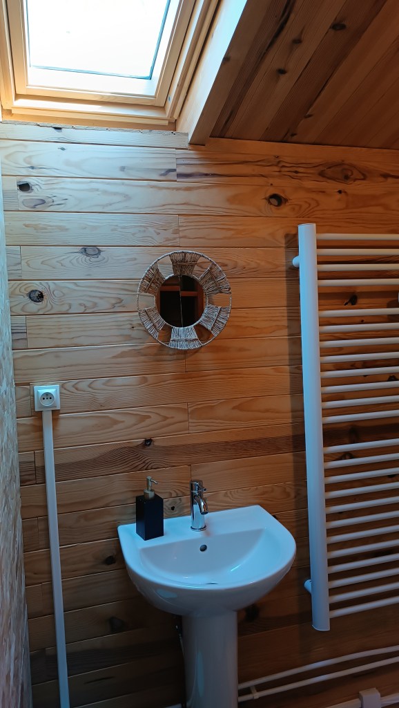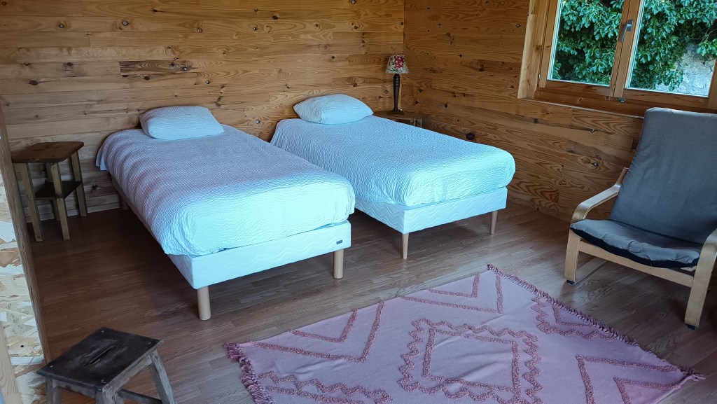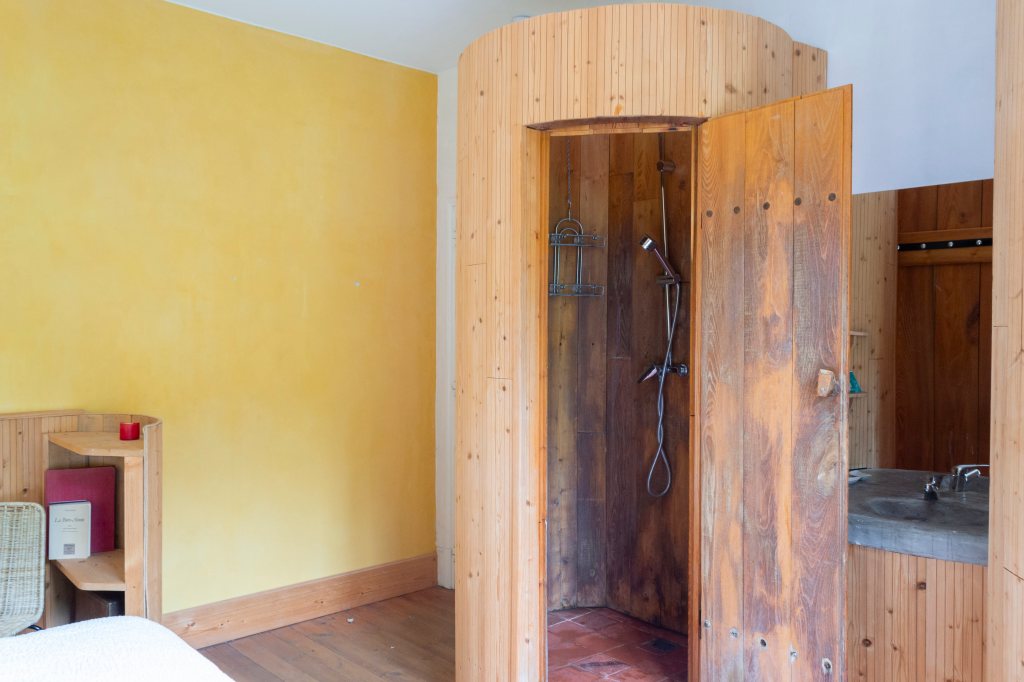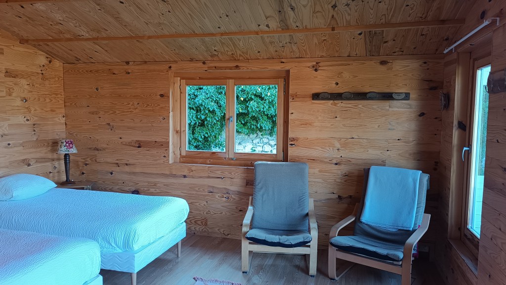 Dernier espace rénové (hiver 2024), le chalet abrite une chambre et sa salle d’eau privative. Tout de bois vêtu, cet espace authentique vous invite à la déconnexion et la relaxation. Un peu à l’écart des autres bâtiments, il surplombe le domaine et vous offre une tranquillité à toute épreuve !