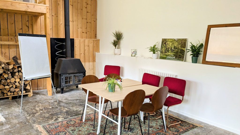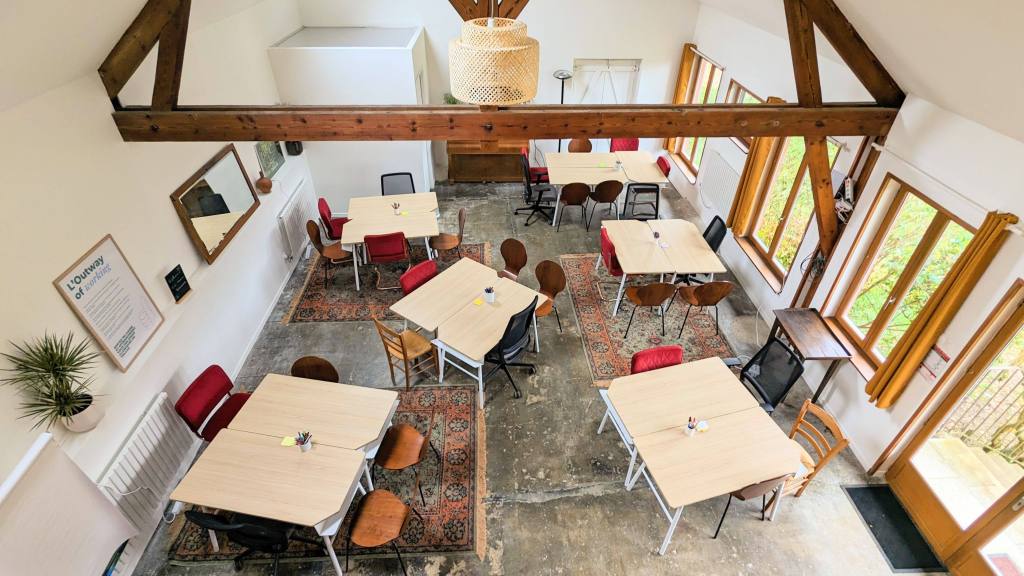La Coopérative est un grand espace de coworking, généralement fermé pour les besoins opérationnels. Un dortoir attenant est ponctuellement rendu accessible pour les grands groupes (+40 personnes) et l’espace de coworking peut être ouvert pour des projets de type stage, séminaires, formations, ou encore retraites en tout genre.