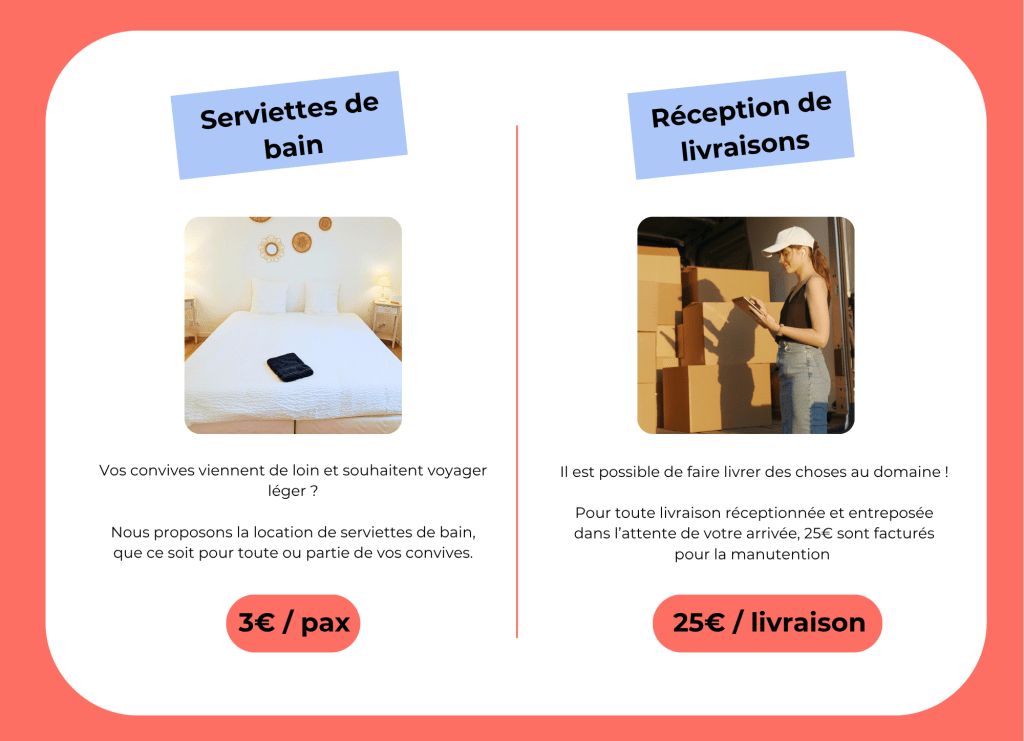 Facilitez votre séjour en vous reposant sur notre expérience ! De la réception de vos livraisons à la mise à disposition de linge de bain, tout est pensé pour que vous, n’ayez rien à penser !